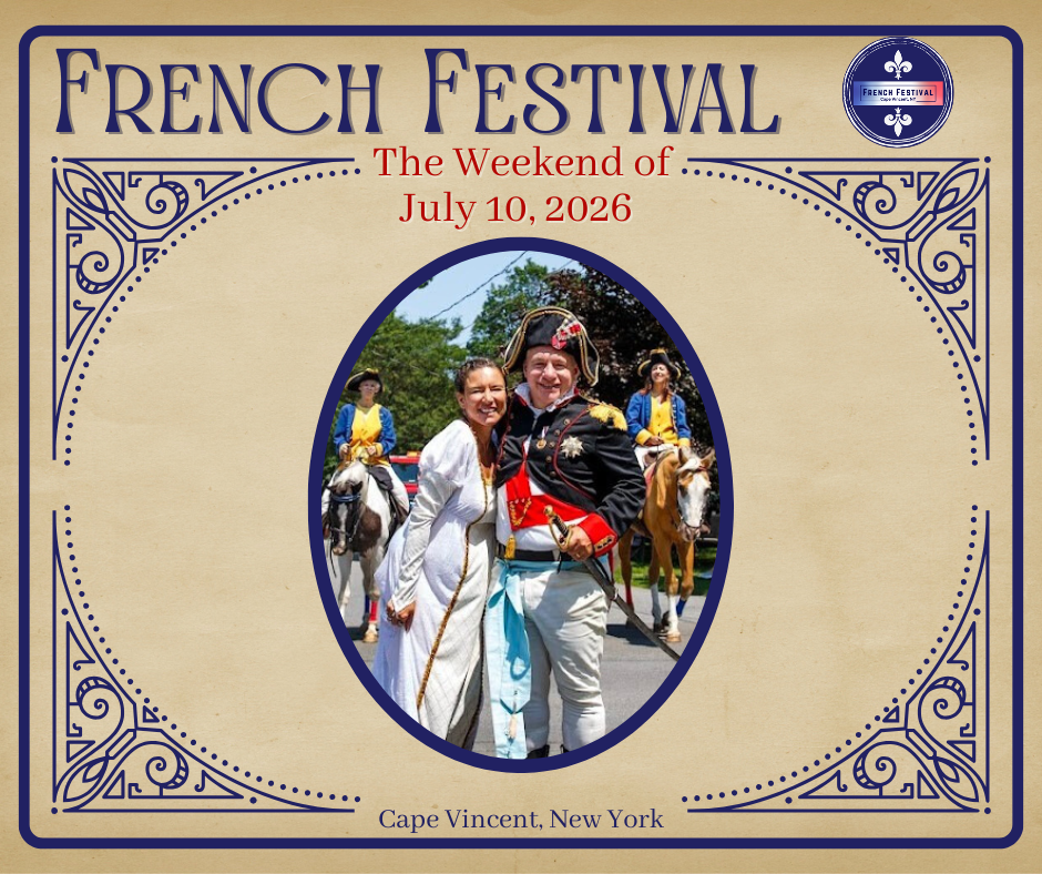 The Cape Vincent French Festival is back — and this year brings a few exciting changes! Join us in beautiful Cape Vincent for a full weekend of French-inspired food, music, shopping, and family fun.