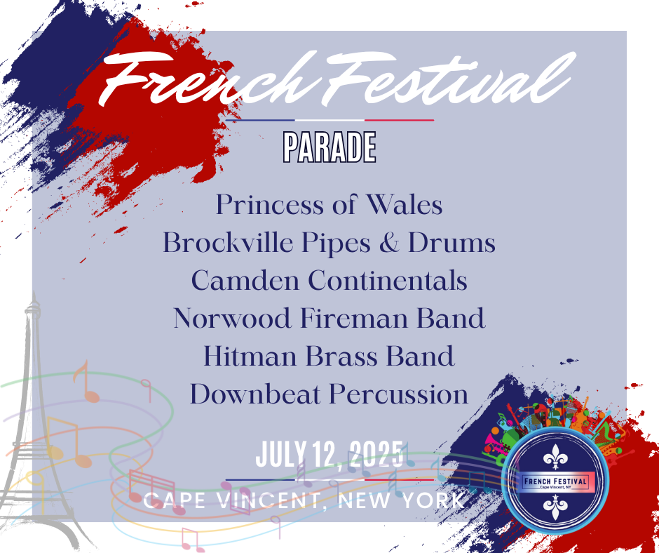 One of the most anticipated highlights of the French Festival, the Cape Vincent Parade brings the streets to life with color, creativity, and a sense of community spirit. Floats, local organizations, dancers, classic cars, marching bands, and more will wind their way through the village in a vibrant celebration of French-American heritage.