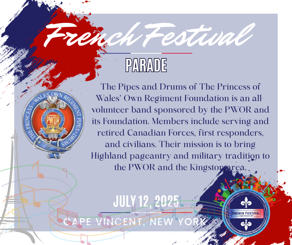The French Festival Parade will begin at Cape Vincent Recreation Park and follow this route: